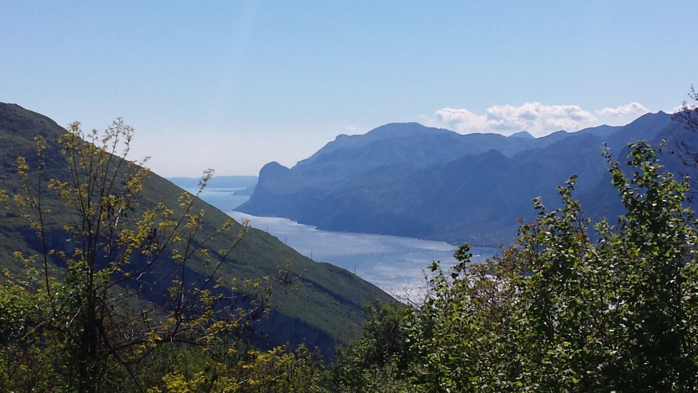 Von Torbole aus geht es die geteerte Baldo Panoramastrasse hinauf. Man sollte schon immer wieder einmal einen Blick auf den Gardasee werfen, die super Aussicht macht die Auffahrt etwas erträglicher.