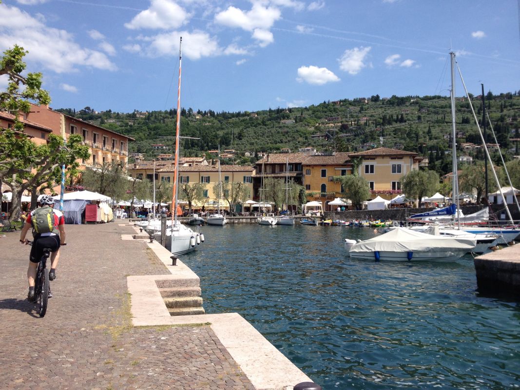 Nach ca. 20 Minuten gelangten wir auf eine steile Straße, die in einen Karrenweg überging und auch sehr steil, aber fahrbar war. Am Schluss ging es über einen guten Schotterweg und Straße hinab nach Brenzone. Von hier fuhren wir auf der Hauptstrasse bis Torri del Benaco am See entlang zurück.