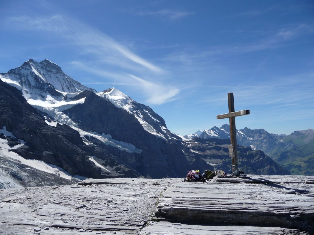 Auf dem Gipfel des Rotstock entfalten sich vor einem Eiger, Mönch und Jungfrau mit deren Gletschern. Wir haben gelesen, dass man hier oben auch übernachten kann. Natürlich muss man alles selbst hinauf tragen. Mir waren die Nächte jedoch zu kalt und habe die Jungfrau Lodge vorgezogen. Allerdings, wer hat schon die Gelegenheit, unter einem einzigartigen Sternenhimmel zu übernachten?