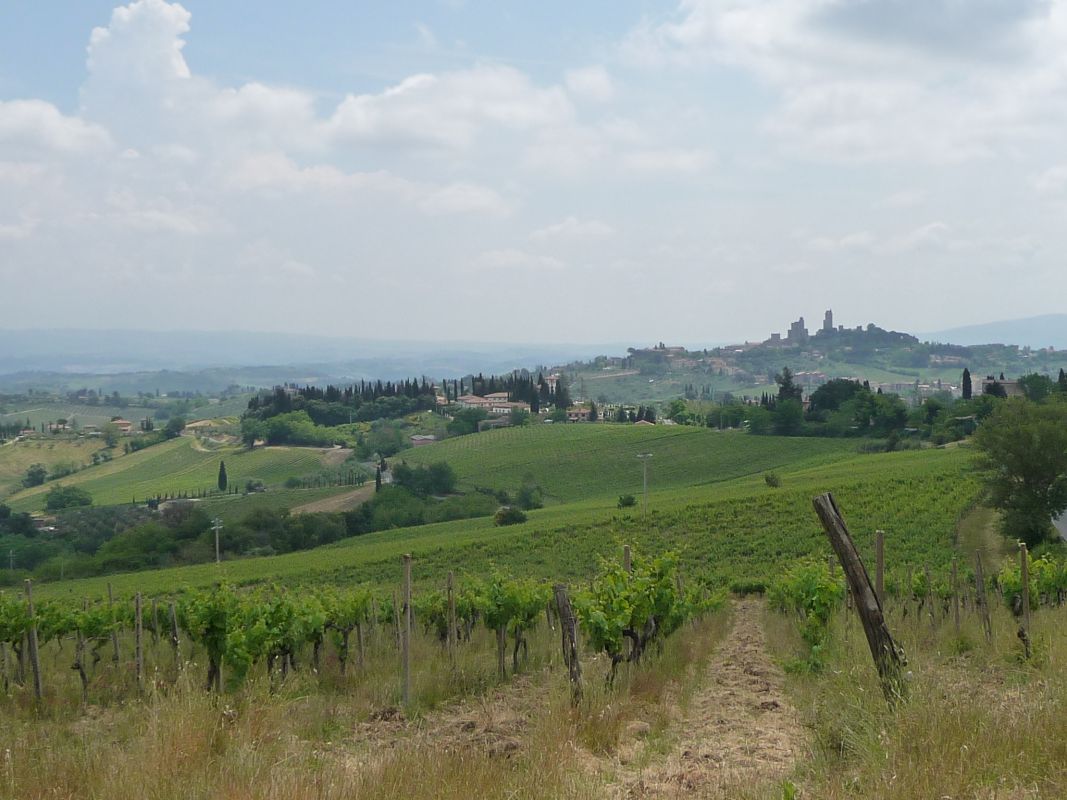 Laut Tourbeschreibung fährt man von San Gimignano aus zunächst auf Strasse bis kurz vor Il Castagno. Dann wunderschöne Schotterstrasse, z.T. Trail über Wanderweg, kurze