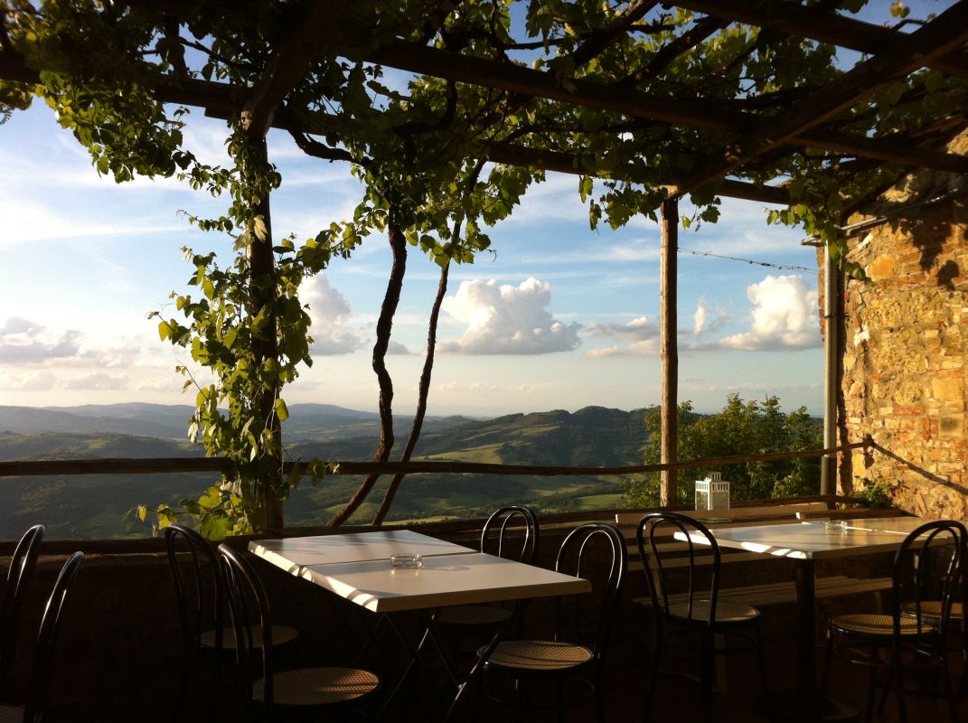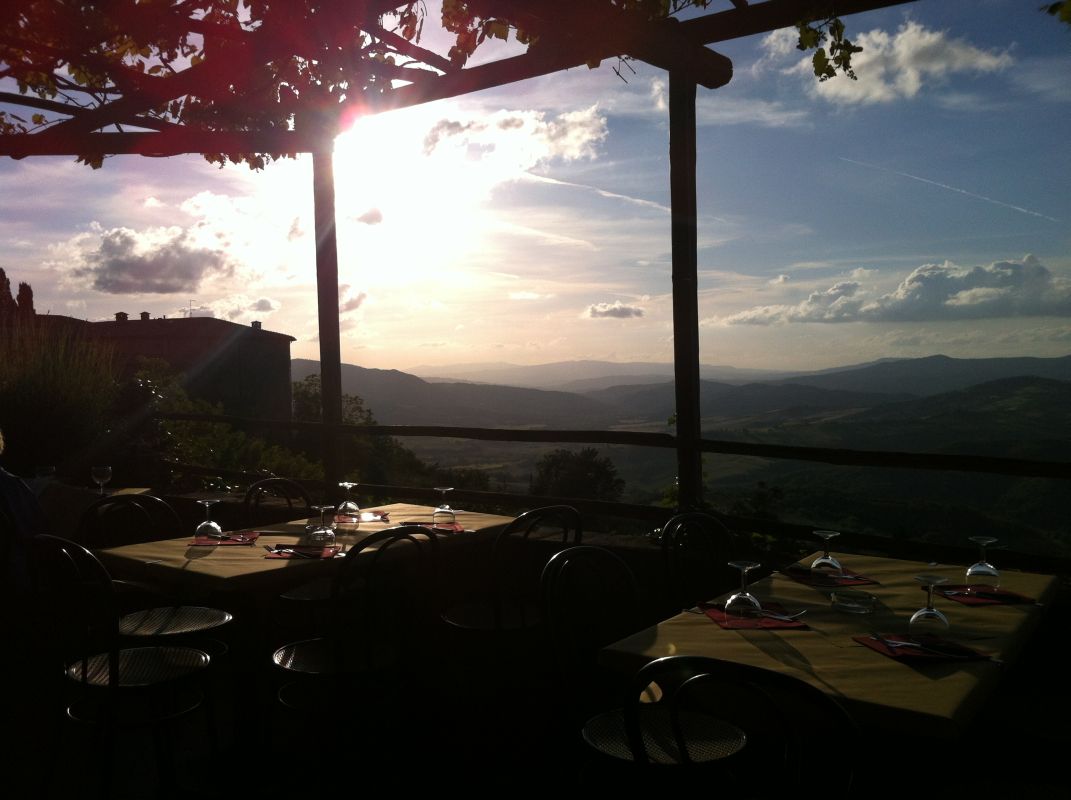 Auch hier wieder eine super schöne Tour. Und zum Abschluss des Tages gingen wir noch schön essen im La Pergola in Radicondoli mit romantischem Sonnenuntergang.