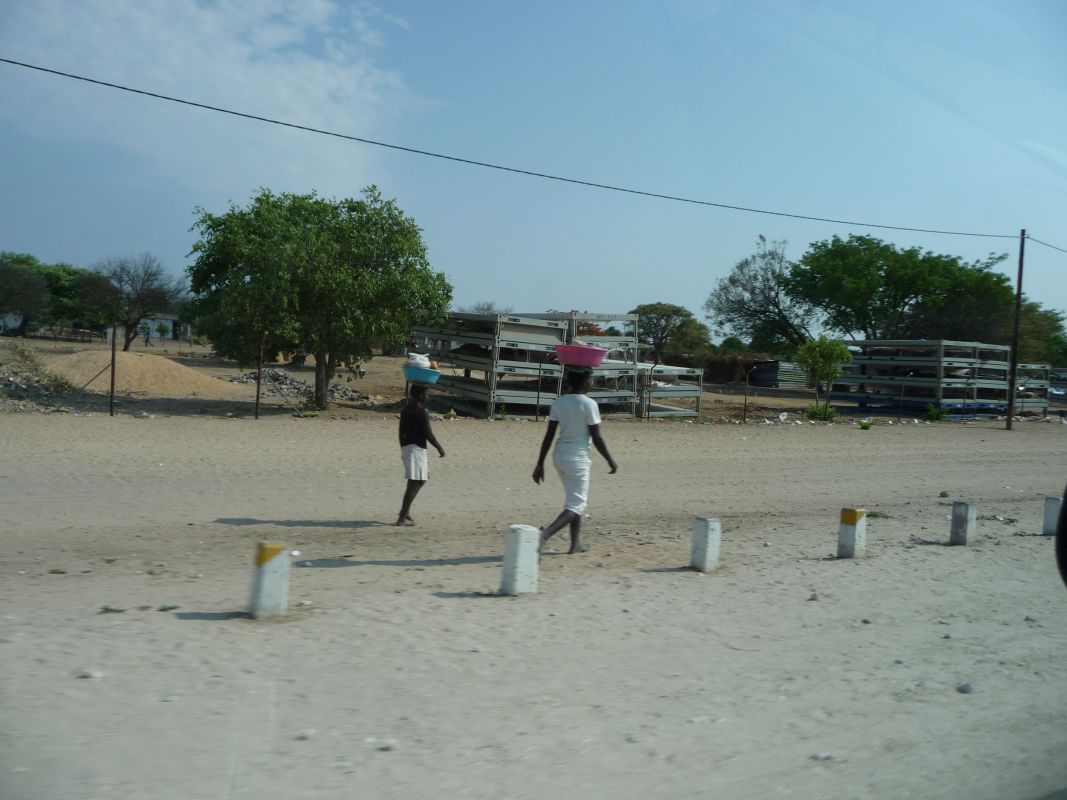 Die Straße nach Rundu führt in das richtige afrikanische Leben – Frauen mit ihren KindernNamibia04 auf dem Rücken und Krügen auf den Köpfen, Rundhütten am Straßenrand. Es ist so faszinierend, gleichzeitig aber auch ziemlich befremdlich.