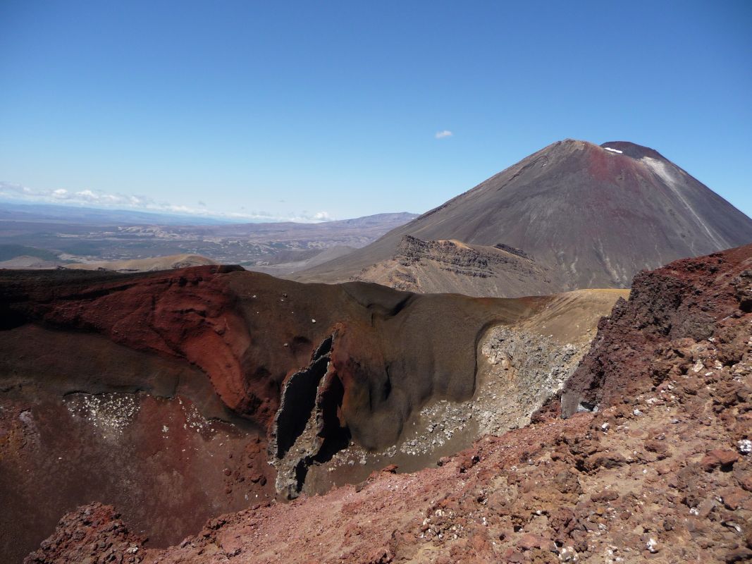 Zum Red Crater ging es steil bergauf, aber so hat man die Möglichkeit, in den Crater hinzusehen. Der Name hält, was er verspricht. Von da aus gibt es auch einen Weg zum Tongariro Vulkan.