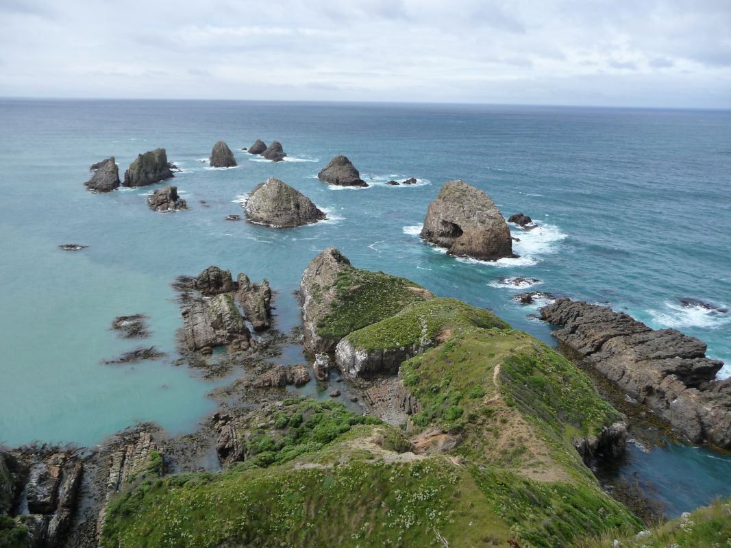 Auf jeden Fall sollte man sich einen Abstecher zum Nugget Point nicht entgehen lassen. Auf dem Weg vom Parkplatz zum Leuchtturm kommt man an schroffen Felskanten und