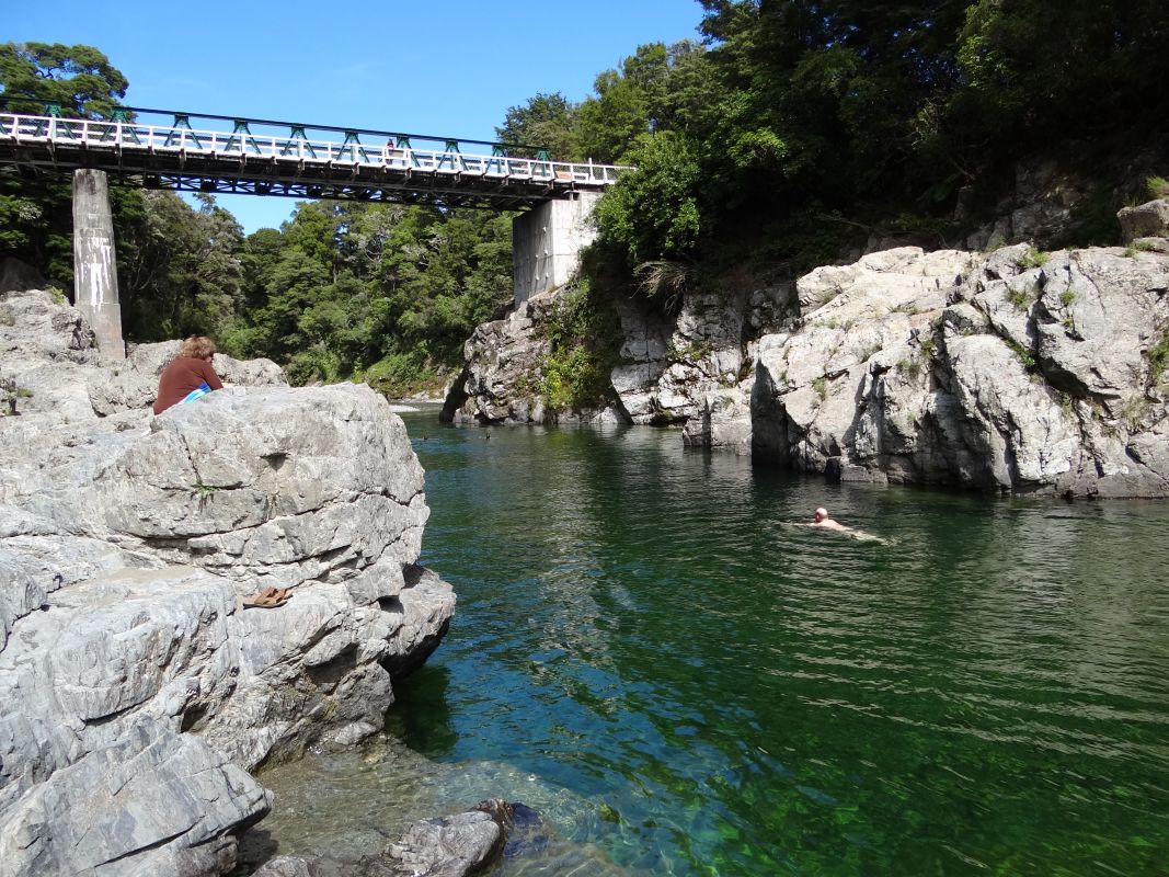 Vormittags wurde uns der neue Camper geliefert. Nach schnellem Umpacken machten wir uns Richtung Kaikoura auf. Ca. 50 km hinter Blenheim, am Waima River/ Ure River geht rechts eine Schotterstrasse zur Sawcut Gorge ab.