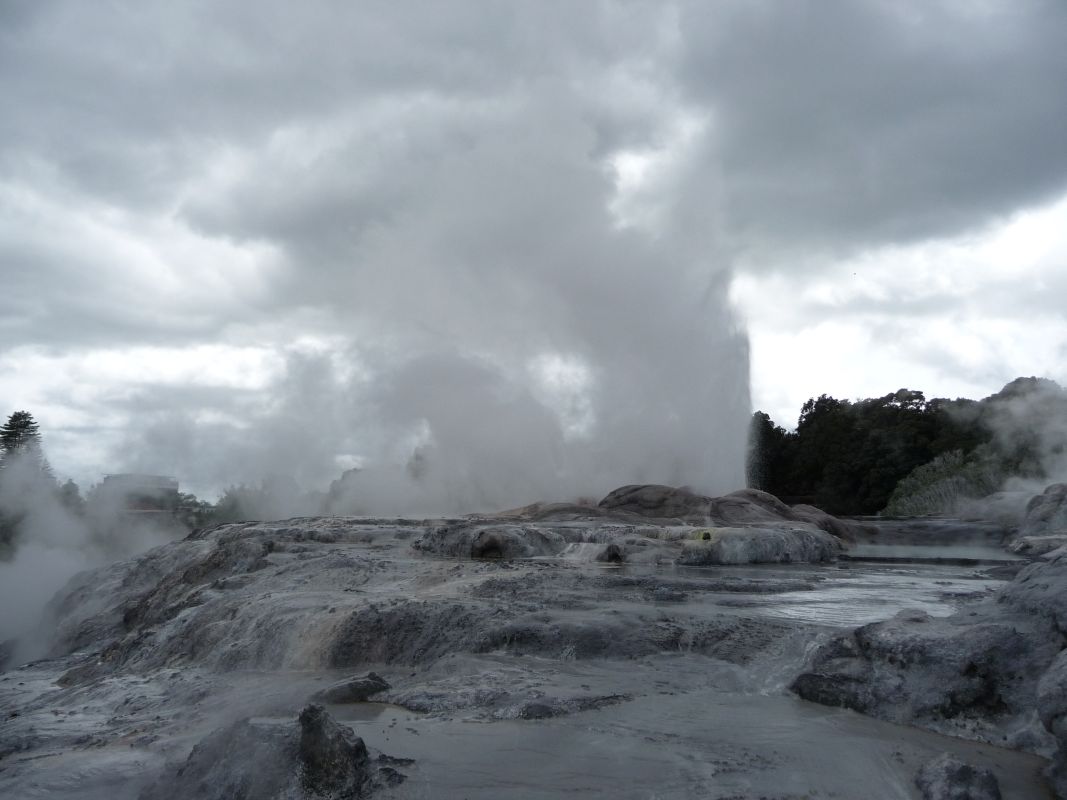 Frühzeitig brachen wir im Tongariro National Park auf und fuhren nach Rotorua zu den Geysiren. Wir machten einen Stop bei dem Park Te Puia.