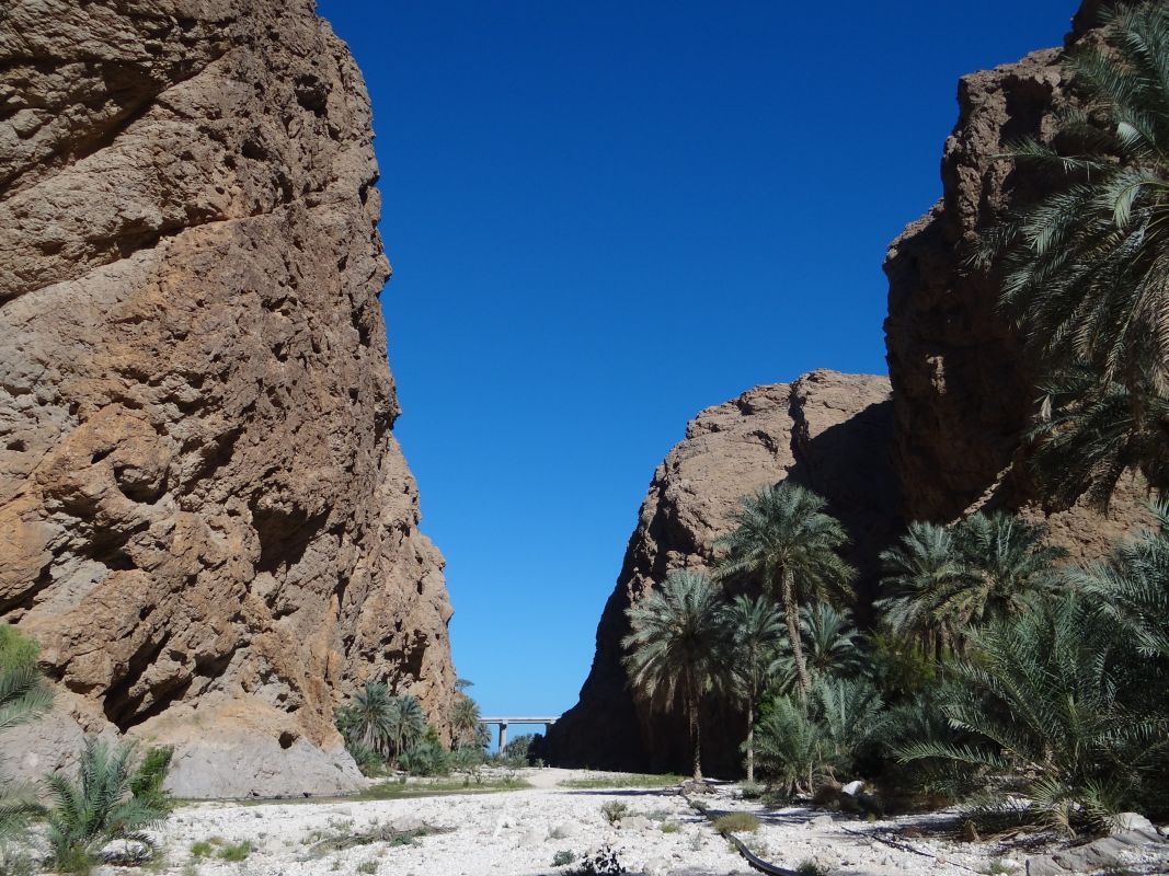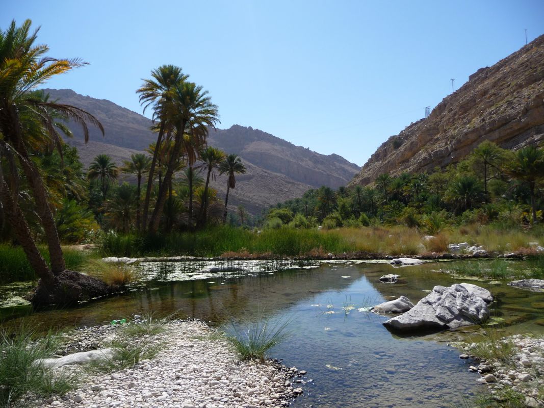 bis zum Wadi Bani Khalid. Auch dieses Wadi ist super schön… viele Palmen, man kann baden und es gibt ein Restaurant mit gutem Essen.
