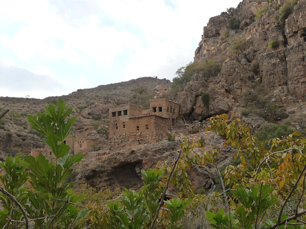 Zusätzlich machten wir noch einen Abstecher nach Al Sawjrah. Erst über Asphalt, dann weiter über Schotter schlängelt sich die Strasse immer weiter den Berg hinaus. Am Ende der Strasse gelangt man in einen  kleinen Ort, in dem auch die Häuser direkt an die Felswände gebaut worden sind und immer noch Menschen darin leben. Echt beeindruckend.