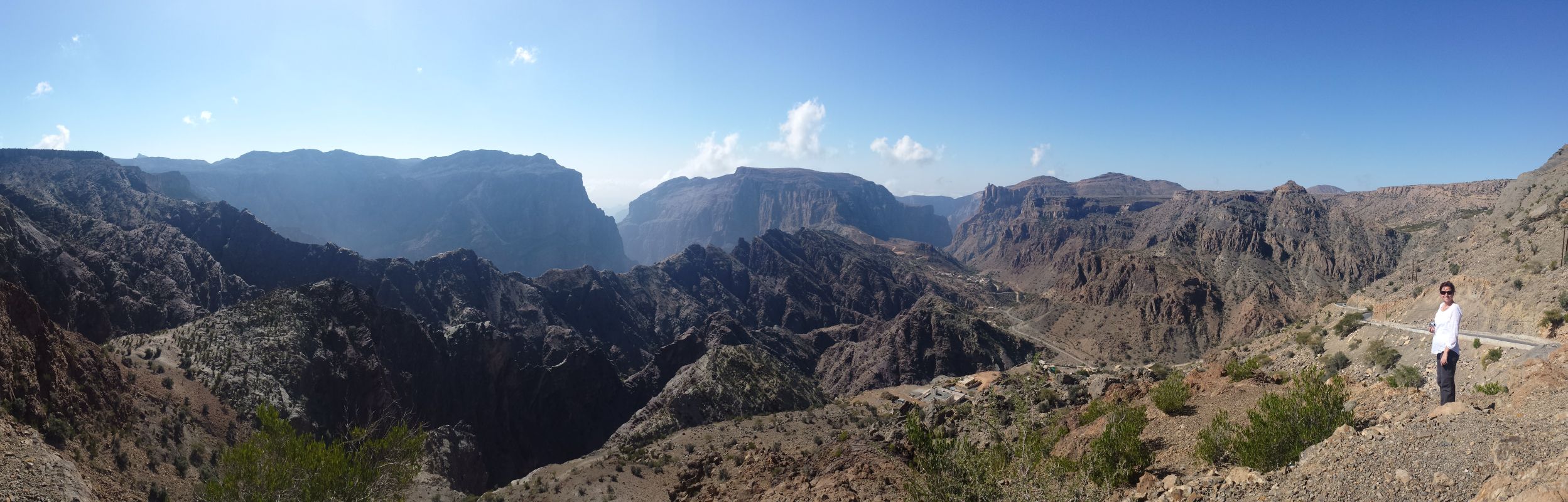 Für Wanderungen auf dem Saiq-Plateau sollte man ca. einen Tag einplanen und wenn möglich, auch im Hotel Sahab übernachten. Vom angrenzenden Ort Al-Aqur unternahmen wir eine Wanderung durch die Terrassenfelder, mit herrlichen Ausblicken Oman21in die Schluchten und bis weit in den Oman hinein. Allerdings sollte man etwas trittsicher sein. Man läuft bis zu dem Ort Ash Shirayjah und muss den selben Weg zurücknehmen. Insgesamt benötigt man ca. 2,5 – 3 Stunden. Wir hatten das Glück und haben in der Mitte des Hinwegs Touristen getroffen, die wir aus einem anderen Hotel kannten. Sie hatten ihren Wagen in Ash Shirayjah abgestellt. So haben wir die Autoschlüssel getauscht und uns anschließend im Hotel Sahab wieder getroffen. So mussten wir den Weg nicht zweimal laufen.