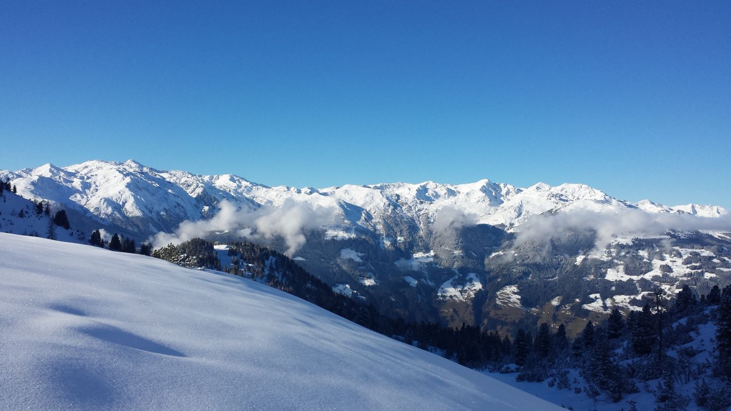 Vom Freikopf aus kann man weiter auf den Gerlosstein gehen. Wir haben hier kurz pausiert und den tollen Ausblick ins Zillertal genossen. Der Rückweg verlief wieder durch das Kar. Ich sage nur: Powderalarm! Wir hatten eine herrliche Tiefschneeabfahrt. Es lief wie von selbst.